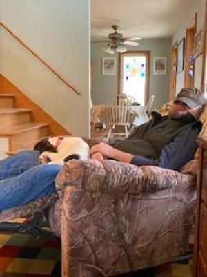 Misty and Tony napping after a hunt