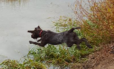 Sam, is the grandpa on the mothers side of the family. Sam is a gentle dog that excels with waterfowl. Weather is no problem with Sam.