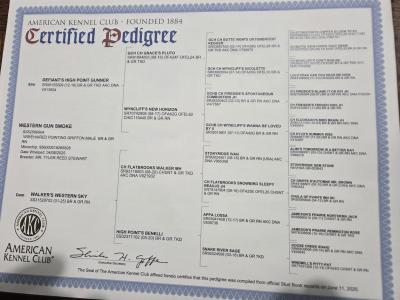 Abby's AKC background papers.